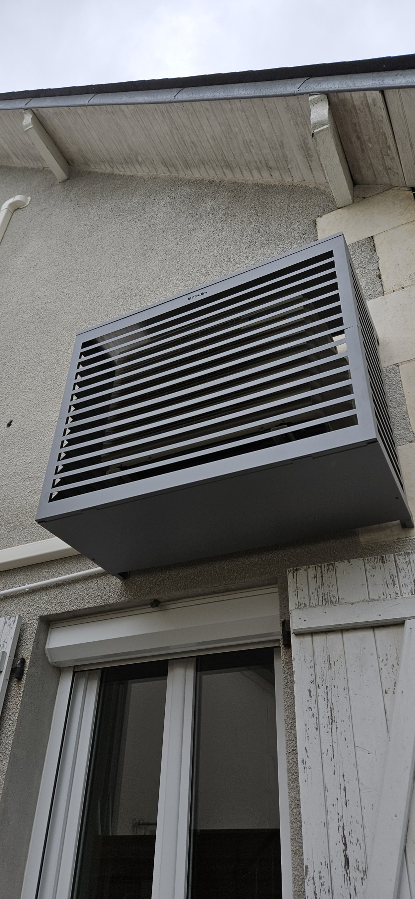 Installation également de 2 cache clim de la marque Decoclim pour les 2 groupes permettant d'une partie de cacher les groupes et d'un autre d'atténuer le bruit des groupes extérieurs qui sont déjà avec un niveau sonore très bas sans avoir à ajouter un cache clim.